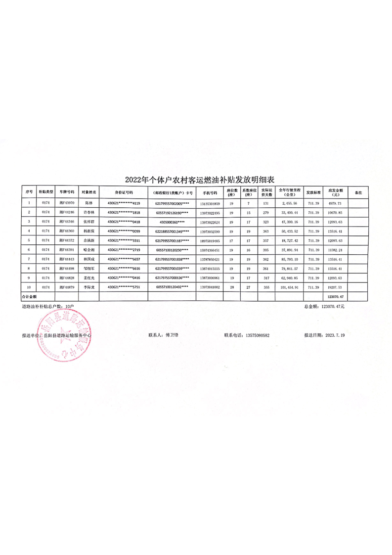 2023年岳陽縣農(nóng)村道路客運補貼(個體經(jīng)營部分)