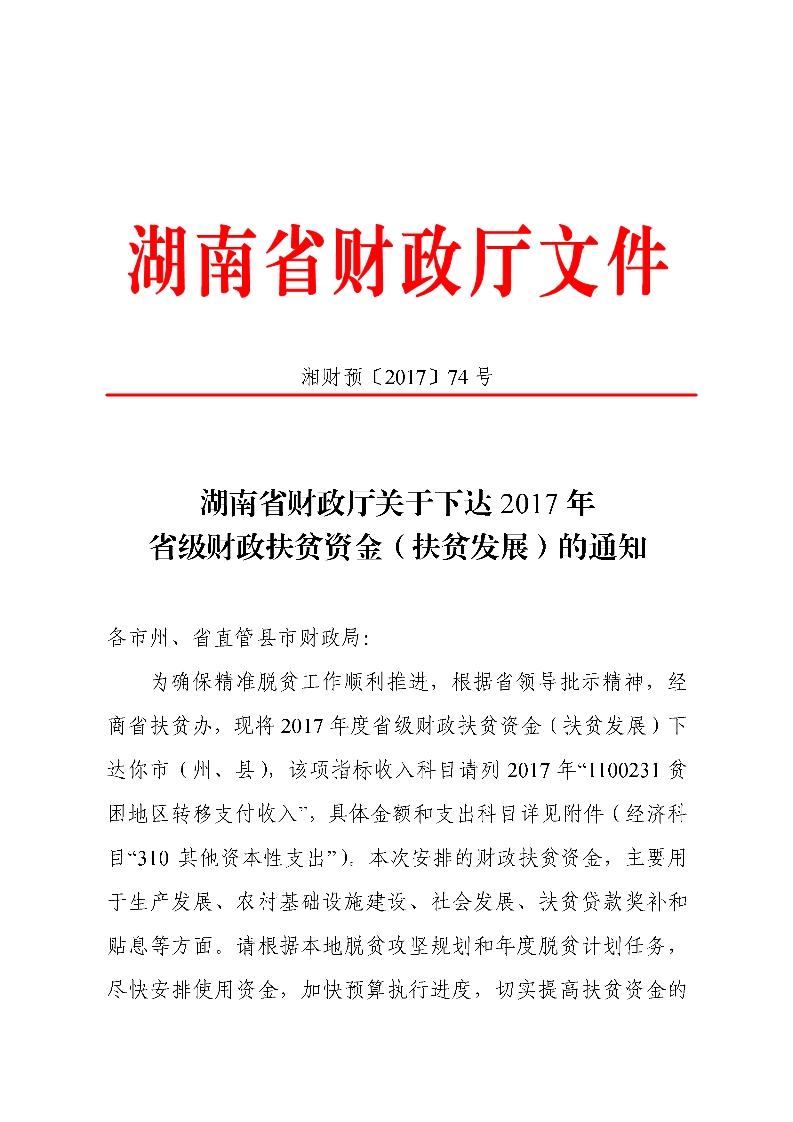 關(guān)于2017年省級(jí)財(cái)政扶貧資金(扶貧發(fā)展)的通知