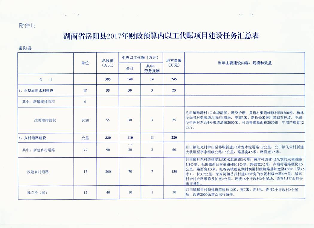 關(guān)于下達(dá)岳陽(yáng)縣2017年財(cái)政預(yù)算內(nèi)以工代賑項(xiàng)目建設(shè)任務(wù)的通知