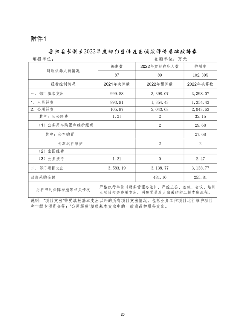 岳陽縣長湖鄉(xiāng)2022年度部門整體支出績效評價報告
