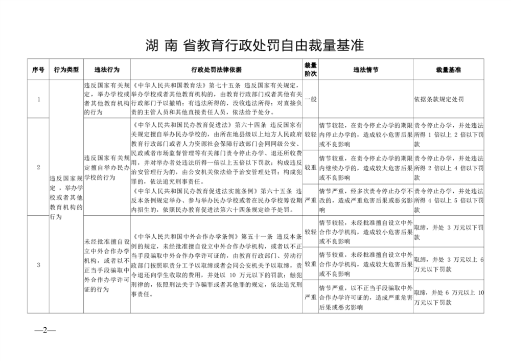湖南省教育廳關于印發(fā)《湖南省教育行政 處罰自由裁量基準》的通知
