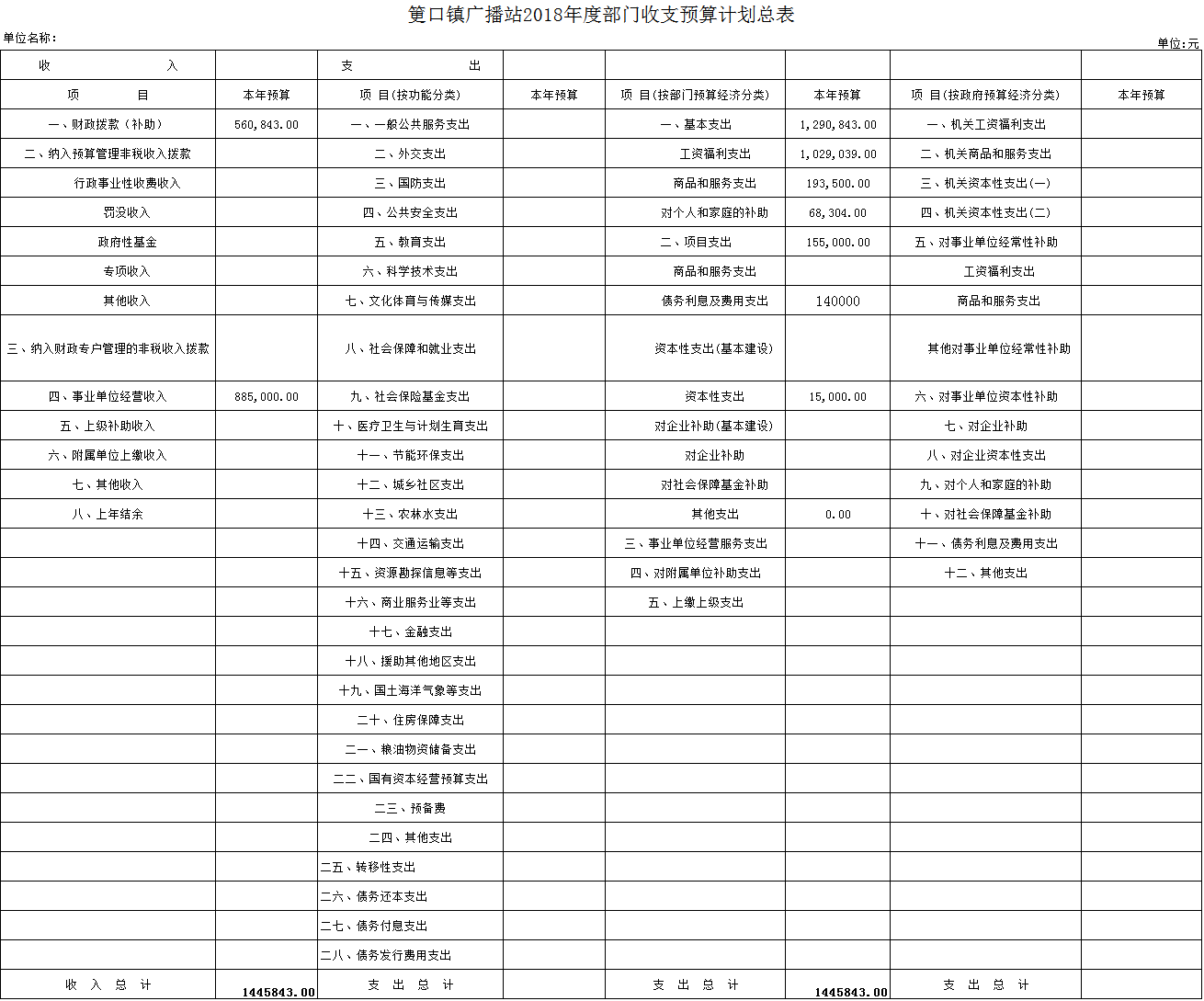 筻口鎮(zhèn)廣播站2018年度部門(mén)收支預(yù)算計(jì)劃總表