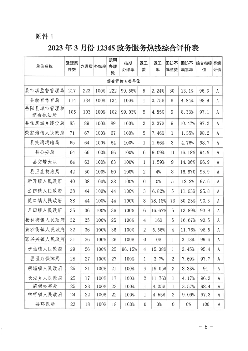 岳陽縣12345公眾服務(wù)熱線2023年3月辦理情況通報(bào)