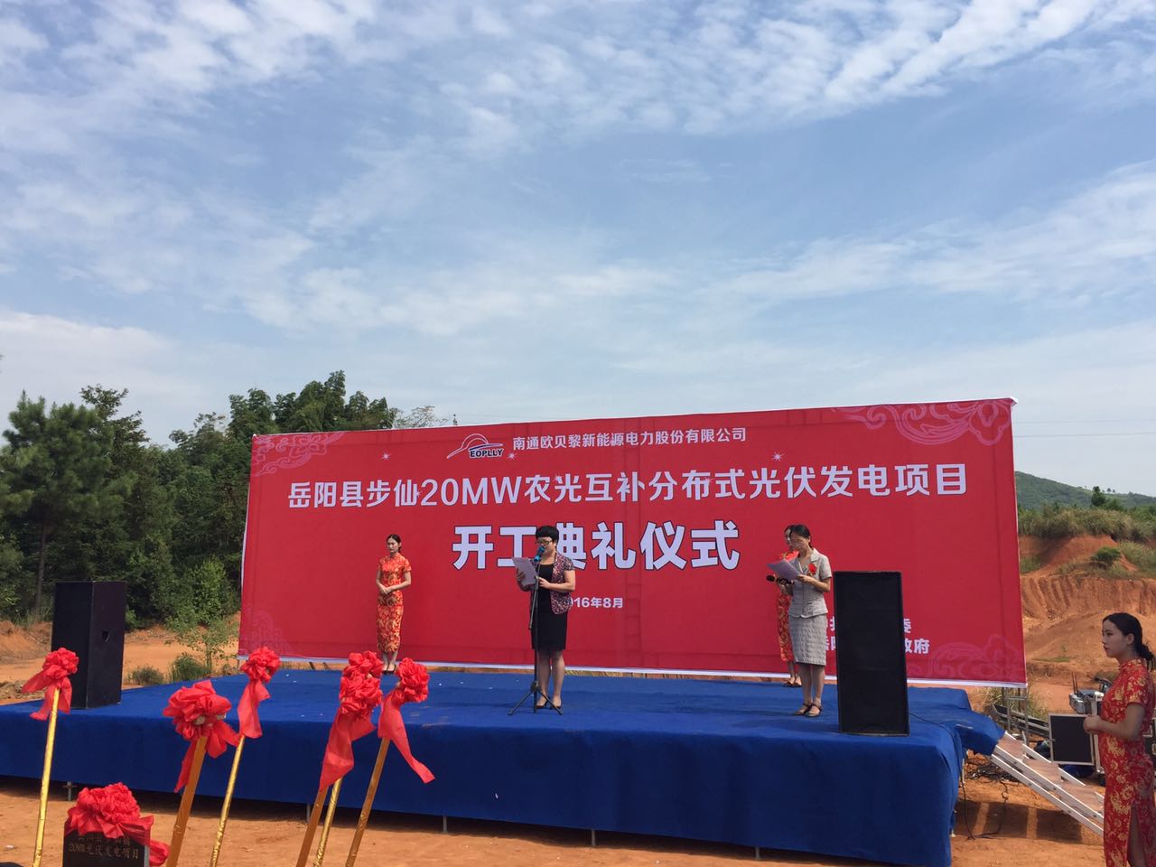 8-30上午,步仙鎮(zhèn)20MW農(nóng)光互補分布式光伏發(fā)電項目奠基儀式在步仙鎮(zhèn)東岳村隆重舉行。副縣長彭碧芳、規(guī)劃、國土、環(huán)保、水保、招商、電力等相關職能部門,步仙鎮(zhèn)全體鎮(zhèn)村干部、南通歐貝黎新能源電力股份有限公司代表及建設單位相關負責人出席。