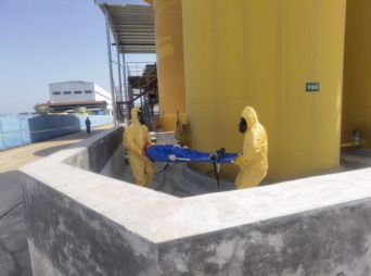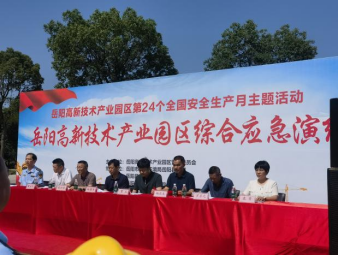 企業(yè)啟動應(yīng)急預(yù)案進行初期應(yīng)急處置,演練共分為企業(yè)自救、園區(qū)Ⅰ級應(yīng)急響應(yīng)、岳陽縣IV級應(yīng)急響應(yīng)和響應(yīng)結(jié)束四個階段,企業(yè)園區(qū)部門聯(lián)動、報警、災(zāi)情上報、初期管控、警戒、疏散、緊急停車、帶壓堵漏、偵檢、災(zāi)情評估、現(xiàn)場處置、洗消、企業(yè)聯(lián)防等,并向當?shù)卣跋嚓P(guān)職能部門報告,當?shù)卣訄蠛螅⒖陶偌瘧?yīng)急力量開展應(yīng)急救援,分別開展信息報送、治安警戒、人員疏散、工程搶救、消防滅火、醫(yī)療救護、清消恢復等應(yīng)急處置工作。