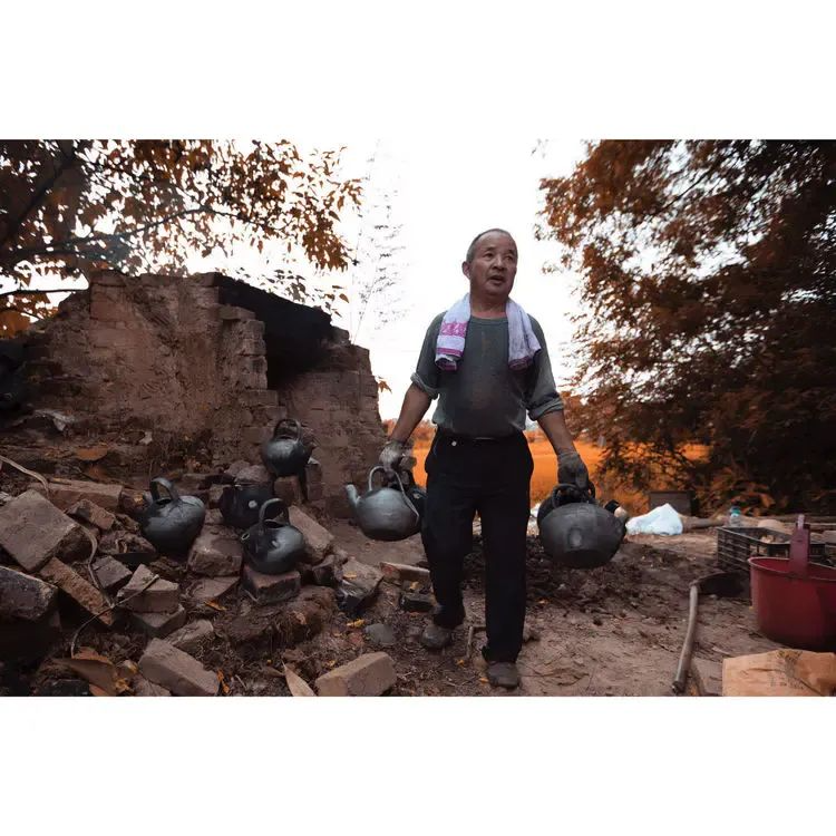 燒窯 以松木為燃料烤制;饎萦尚〉酱舐郎。達(dá)到燒制溫度在窯頂潑水,目的是隔絕氧氣。