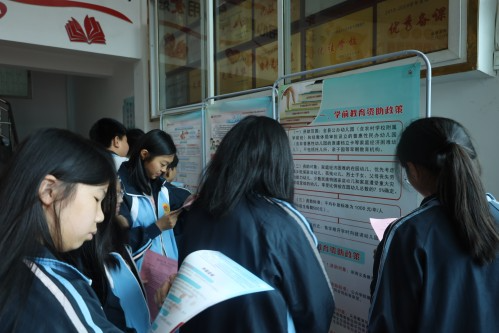 “同學(xué)們,今年的資助政策有了新變化,從2025年春季學(xué)期起,普通高中國家助學(xué)金平均資助標(biāo)準(zhǔn)由每年2000元提高到2300元。擴(kuò)大了中等職業(yè)學(xué)校國家助學(xué)金覆蓋面,提高了資助標(biāo)準(zhǔn)!”上午9:40分,恰逢學(xué)生下課時(shí)間,縣教體局行政審批股、資助中心的工作人員手拿家庭經(jīng)濟(jì)困難學(xué)生資助貼士和致全縣學(xué)生家長的一封信的宣傳單,站在臨時(shí)搭建的流動(dòng)咨詢臺(tái)前,聲音洪亮地為學(xué)生們講解。活動(dòng)現(xiàn)場,“學(xué)前教育資助政策”“義務(wù)教育兩免一補(bǔ)”“普通高中資助政策”“中等職業(yè)學(xué)校資助政策”的展板吸引了同學(xué)們駐足觀看,同學(xué)們邊聽講解邊討論交流。